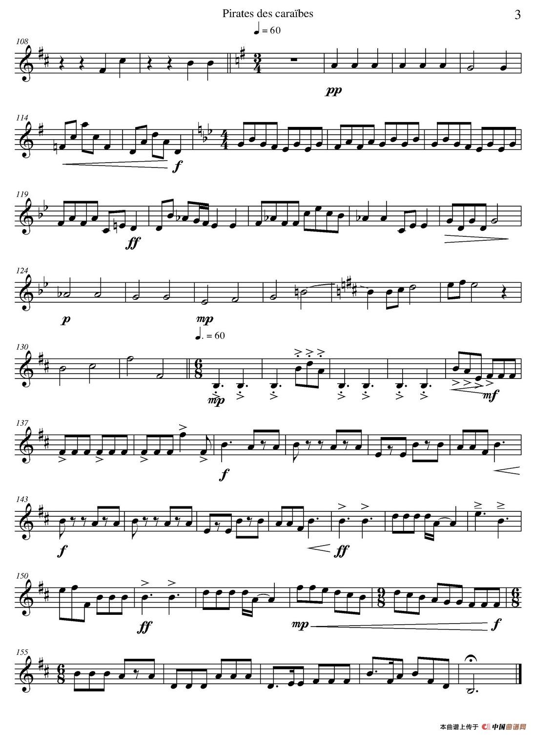 加勒比海盗(四重奏之上低音萨克斯分谱)