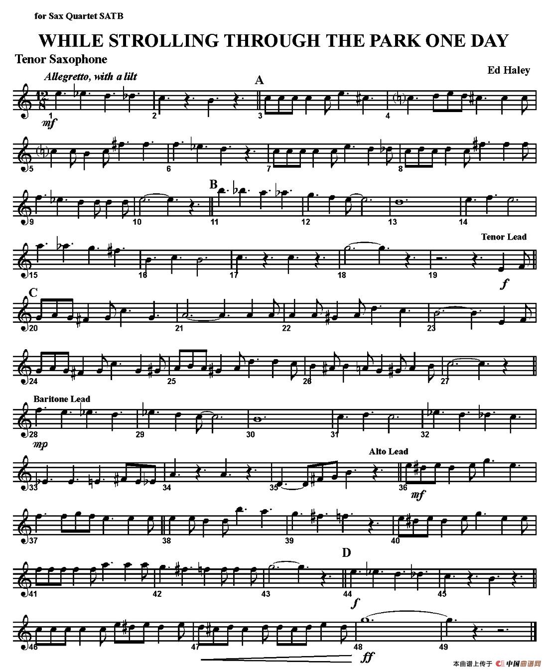 关于《WHILE STROLLING THROUGH THE PARK ONE DAY》曲谱的评论