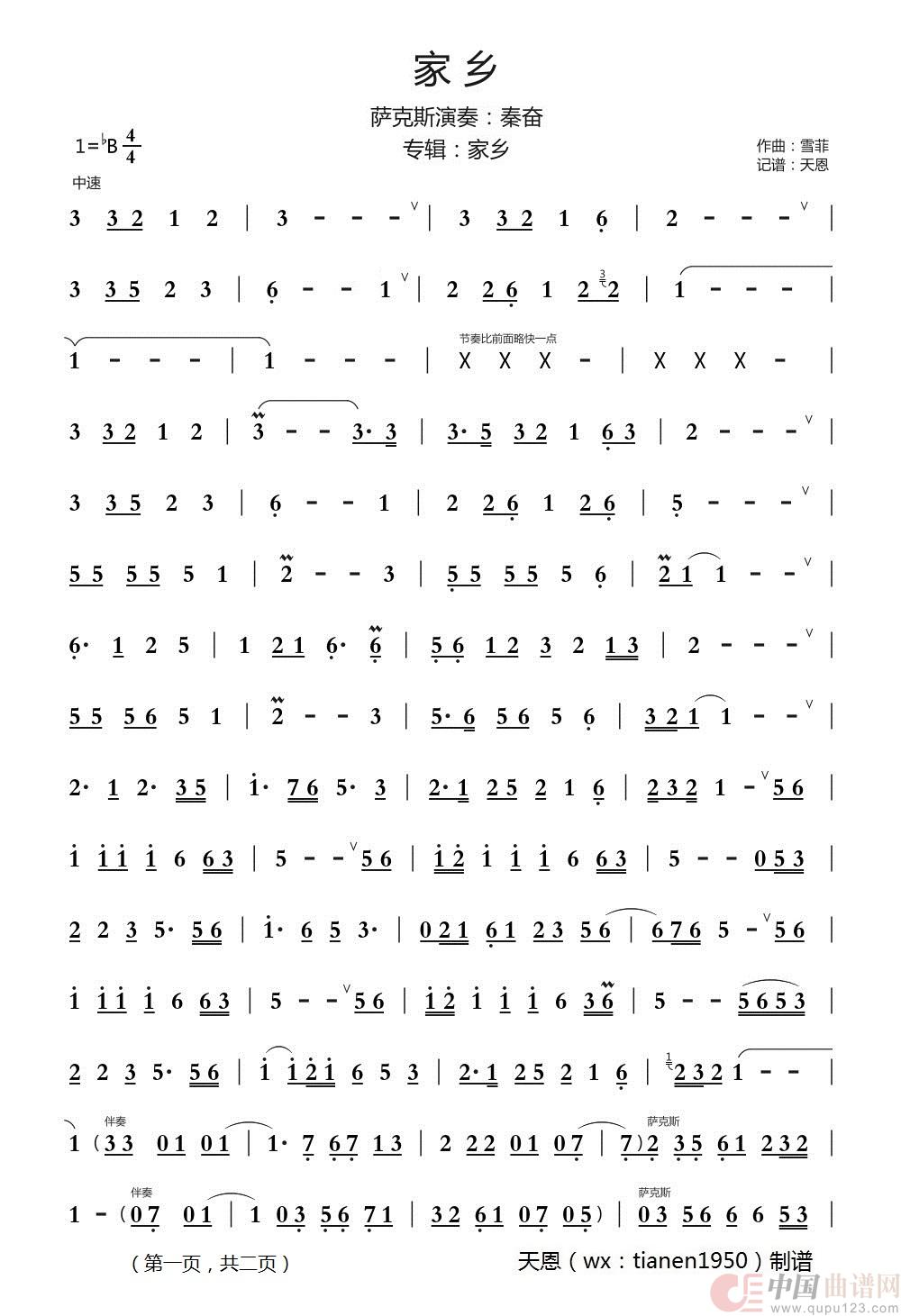 关于《家乡(萨克斯曲)》曲谱的评论