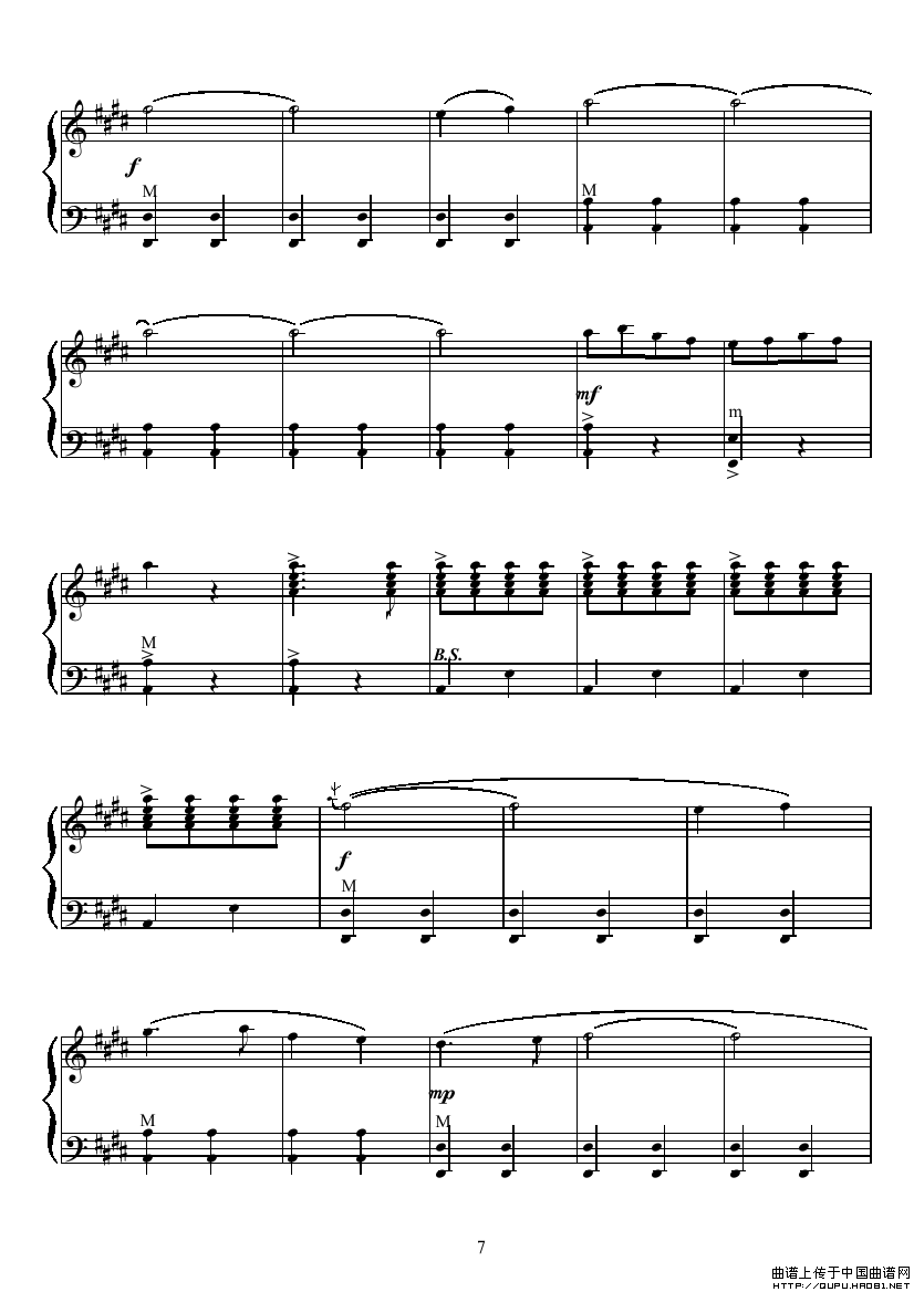 提示:在曲谱图片上单击右键,选择“图片另存为...”即可将曲谱保存到您的电脑中,打印时候可将图片插入到WORD中,调整合适大小打印即可。