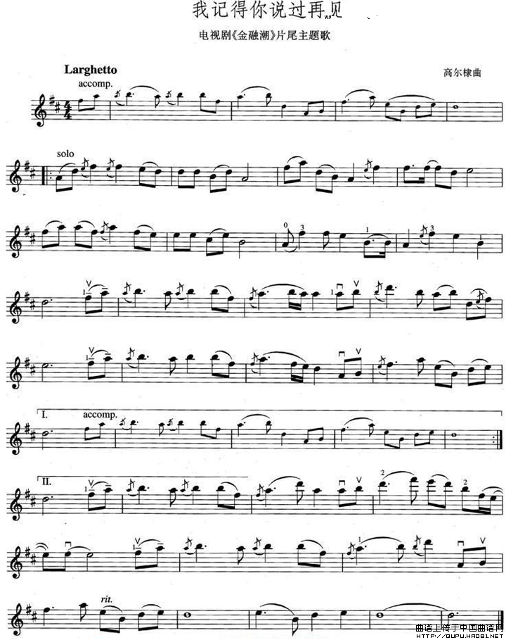 我记得你说过再见(电视剧《金融潮》主题歌 [小提琴谱])