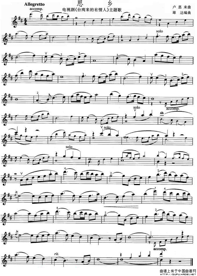关于《思乡》曲谱的评论