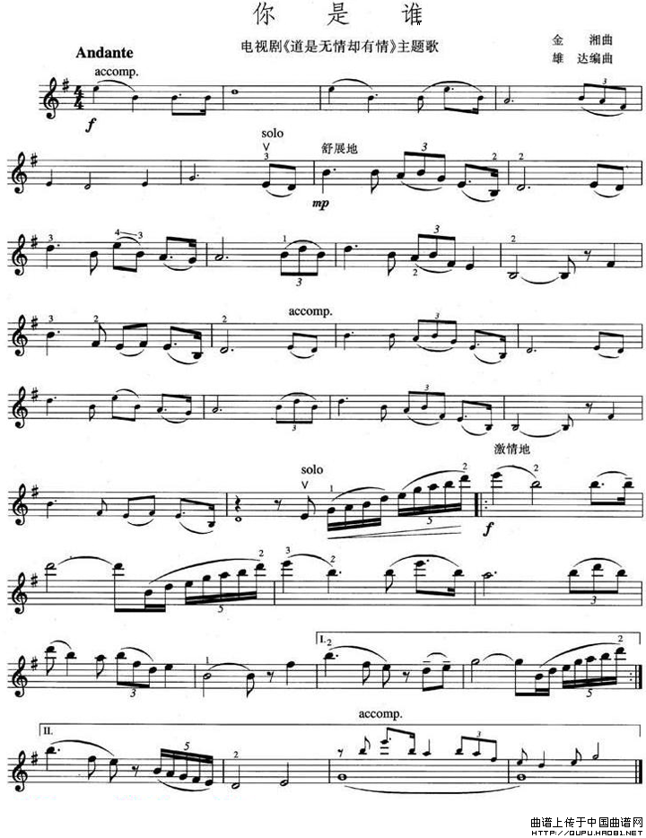 关于《你是谁》曲谱的评论