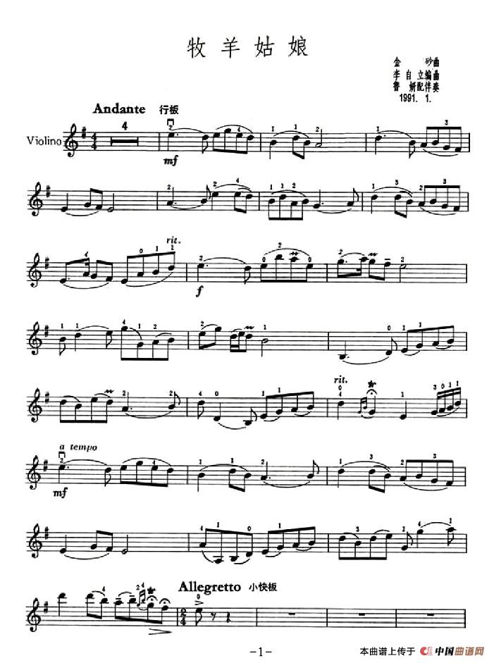 关于《牧羊姑娘》曲谱的评论