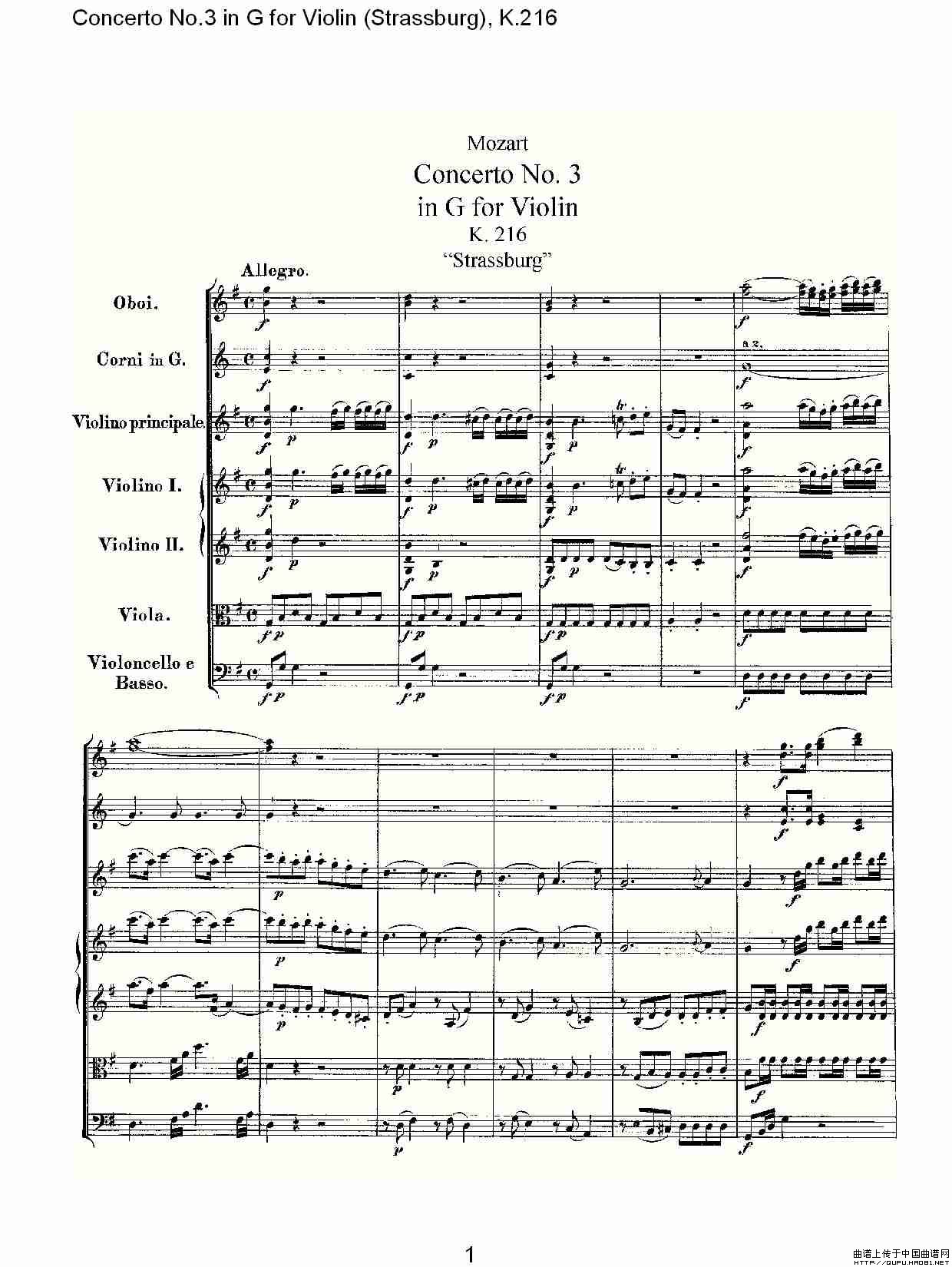 Concerto No.3 in G for Violin (Strassburg), K.216 G调小提琴第三协奏曲, K.216