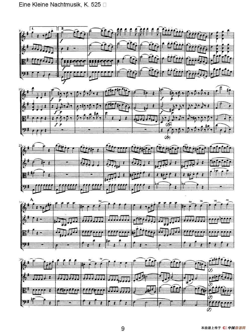 G大调弦乐小夜曲 第一乐章(莫扎特K525弦乐重奏总谱)