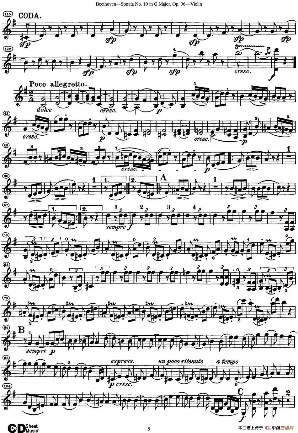 关于《Violin Sonata No.10 in G Major Op.96》曲谱的评论