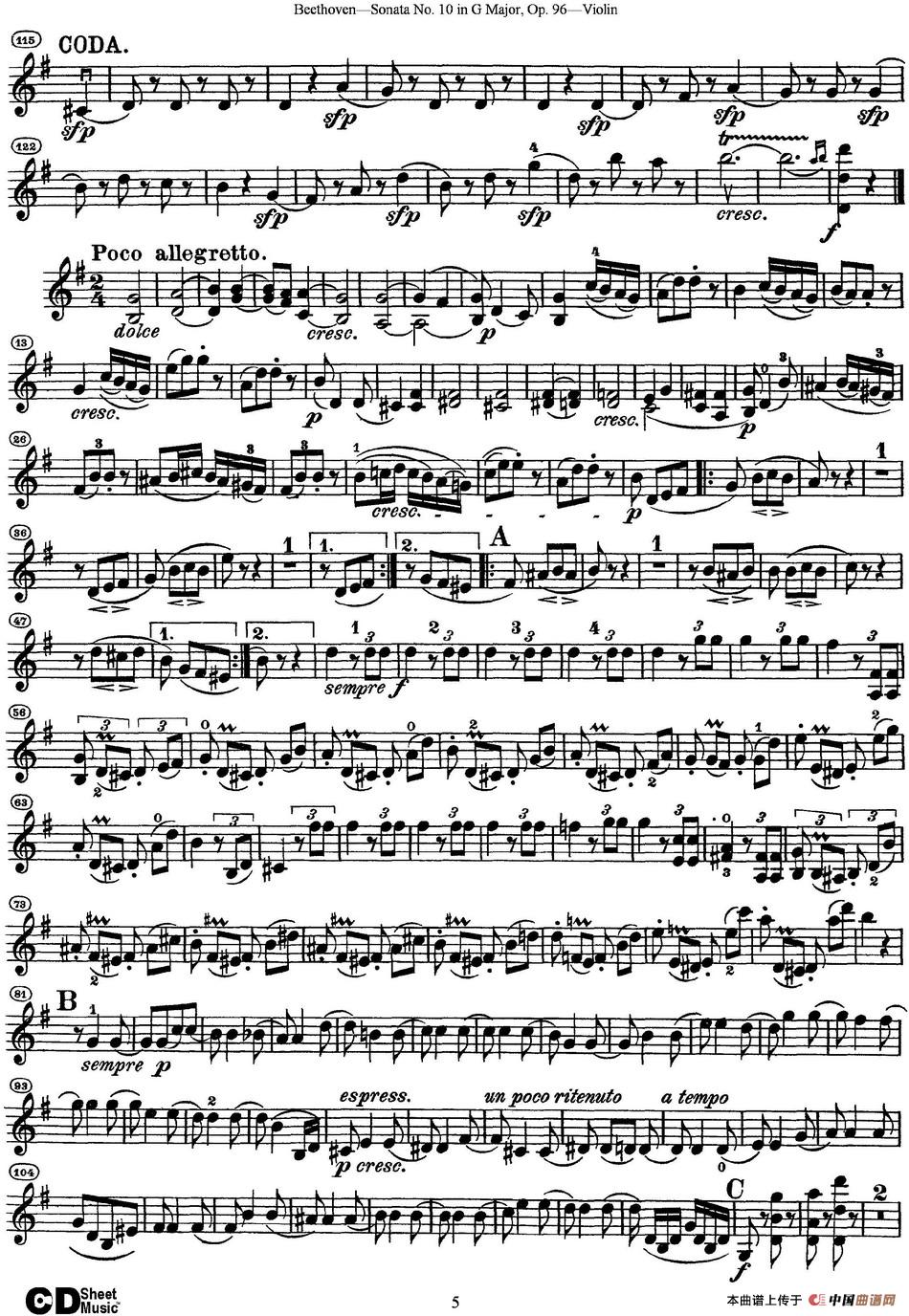 关于《Violin Sonata No.10 in G Major Op.96》曲谱的评论