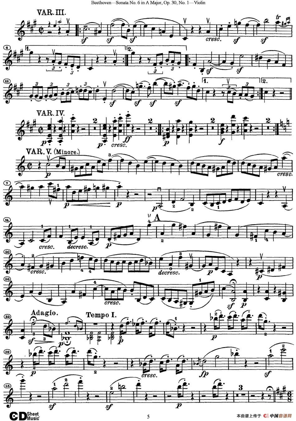 关于《Violin Sonata No.6 in A Major Op.30 No.1》曲谱的评论