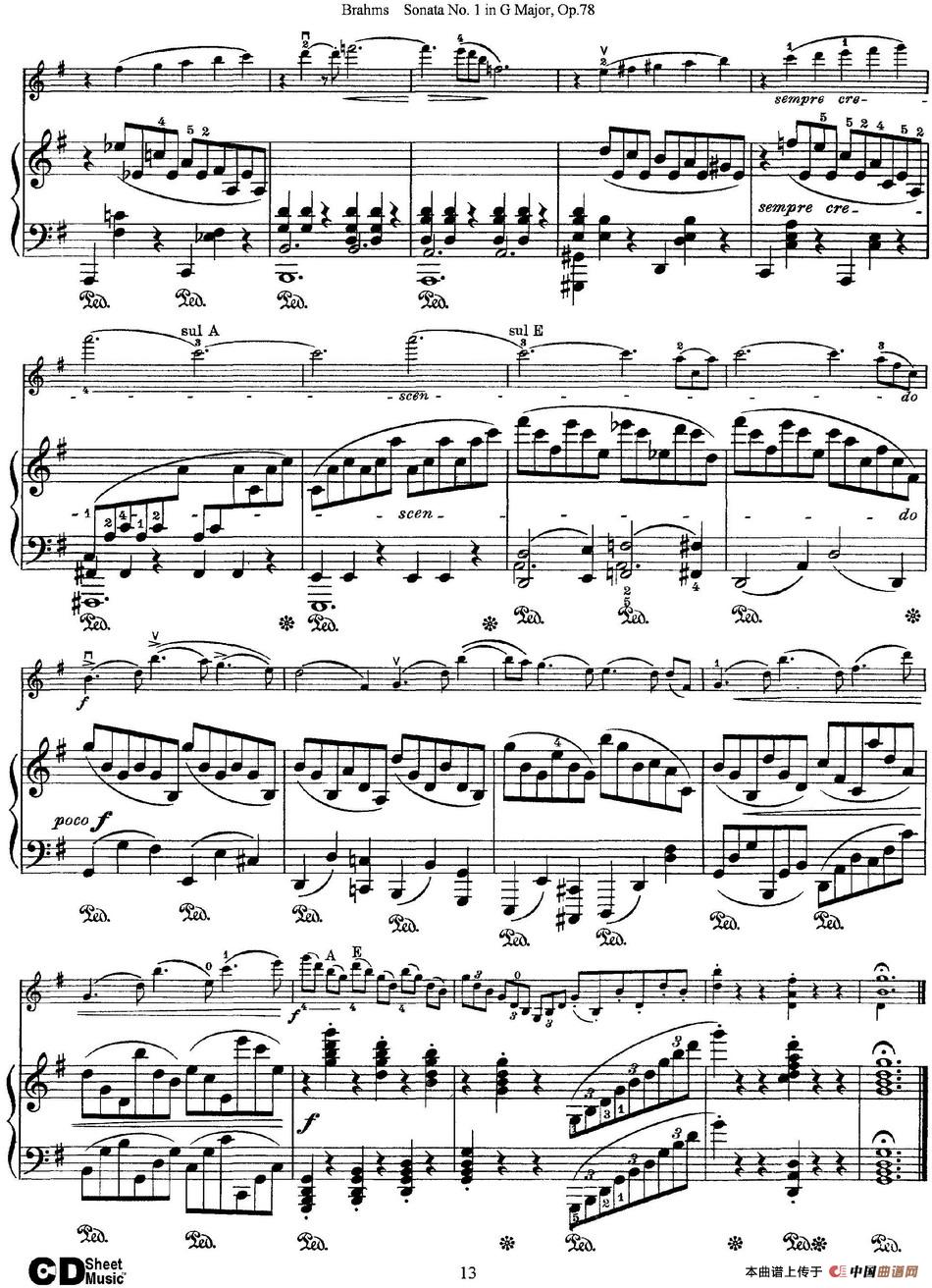 关于《Violin Sonata No.1 in G Major Op.78》曲谱的评论