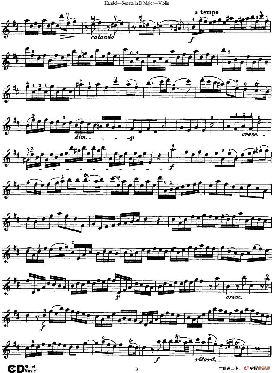 关于《Violin Sonata No.4 in D major》曲谱的评论