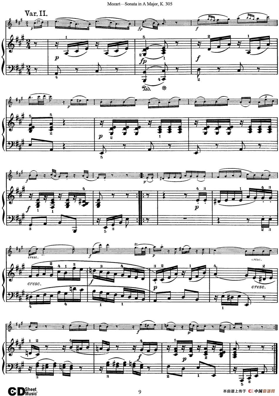 关于《Violin Sonata in A Major K.305》曲谱的评论