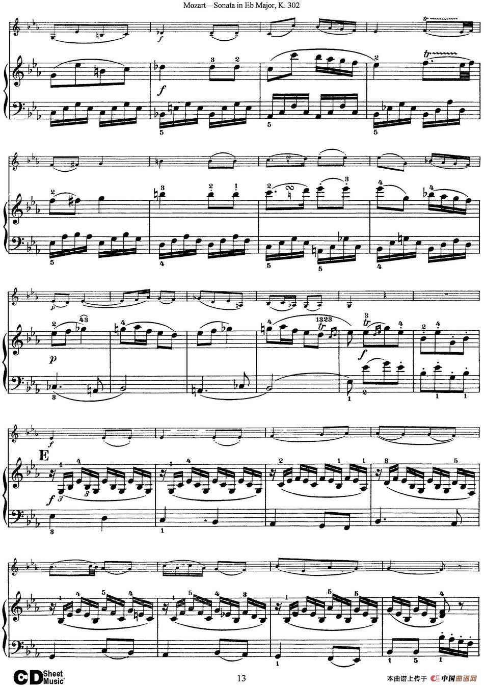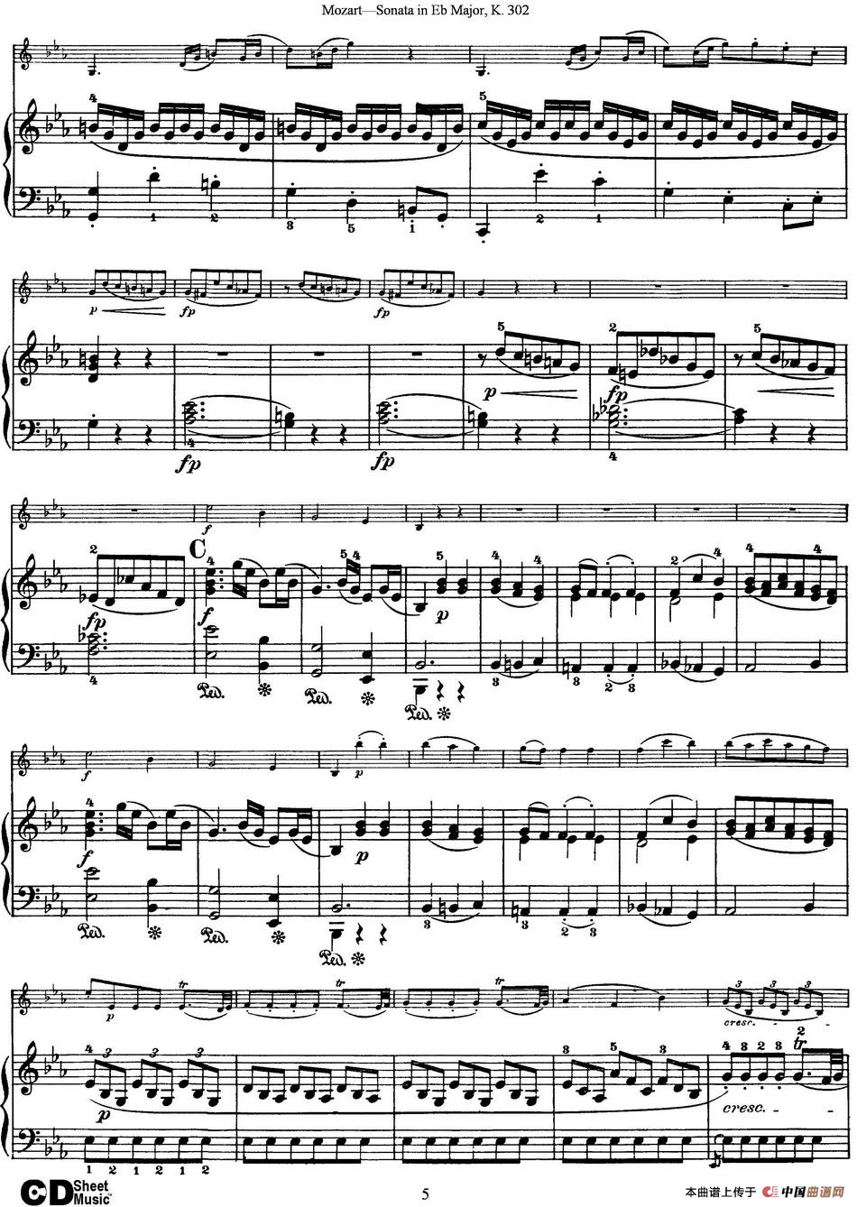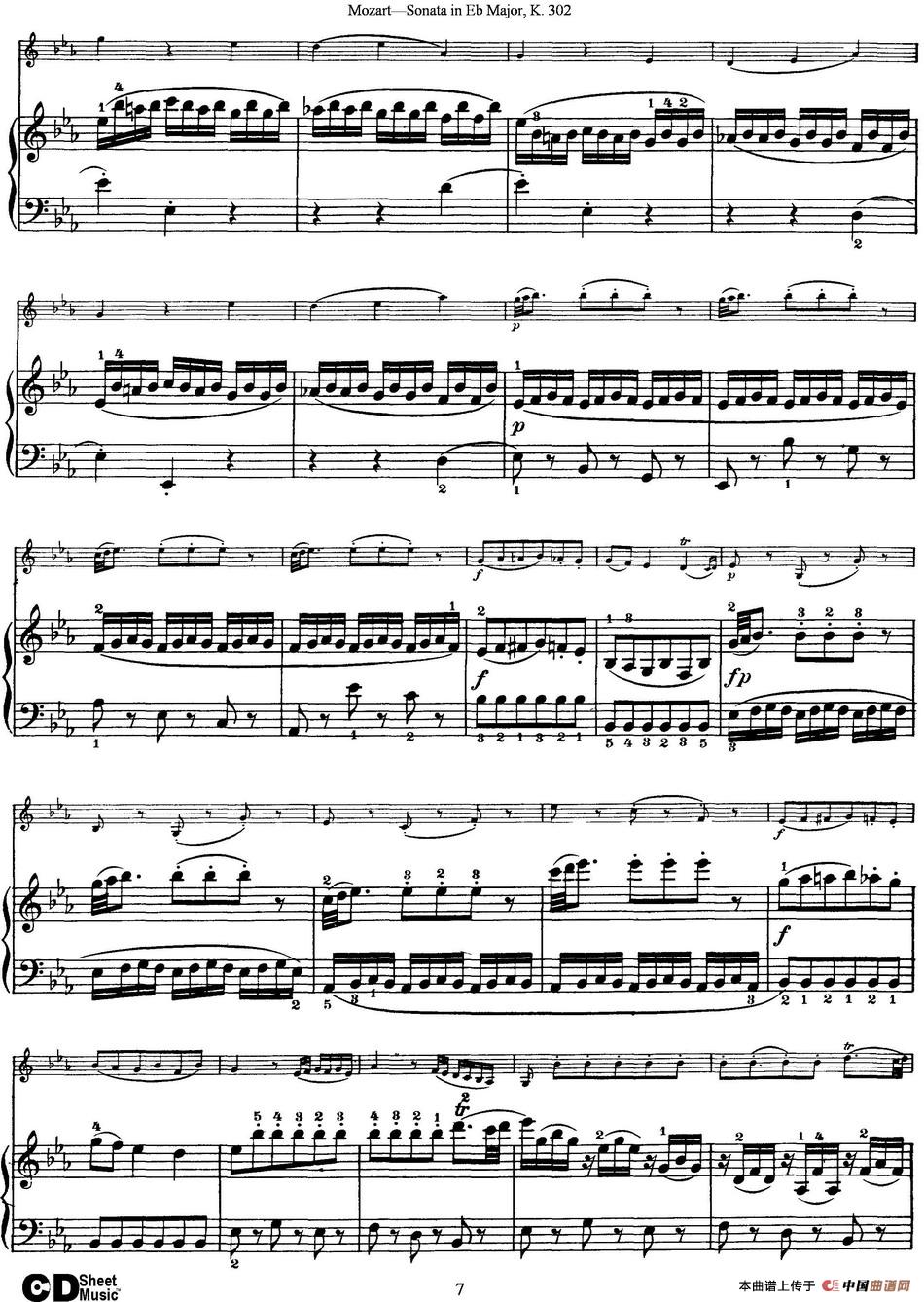 关于《Violin Sonata in Eb Major K.302》曲谱的评论