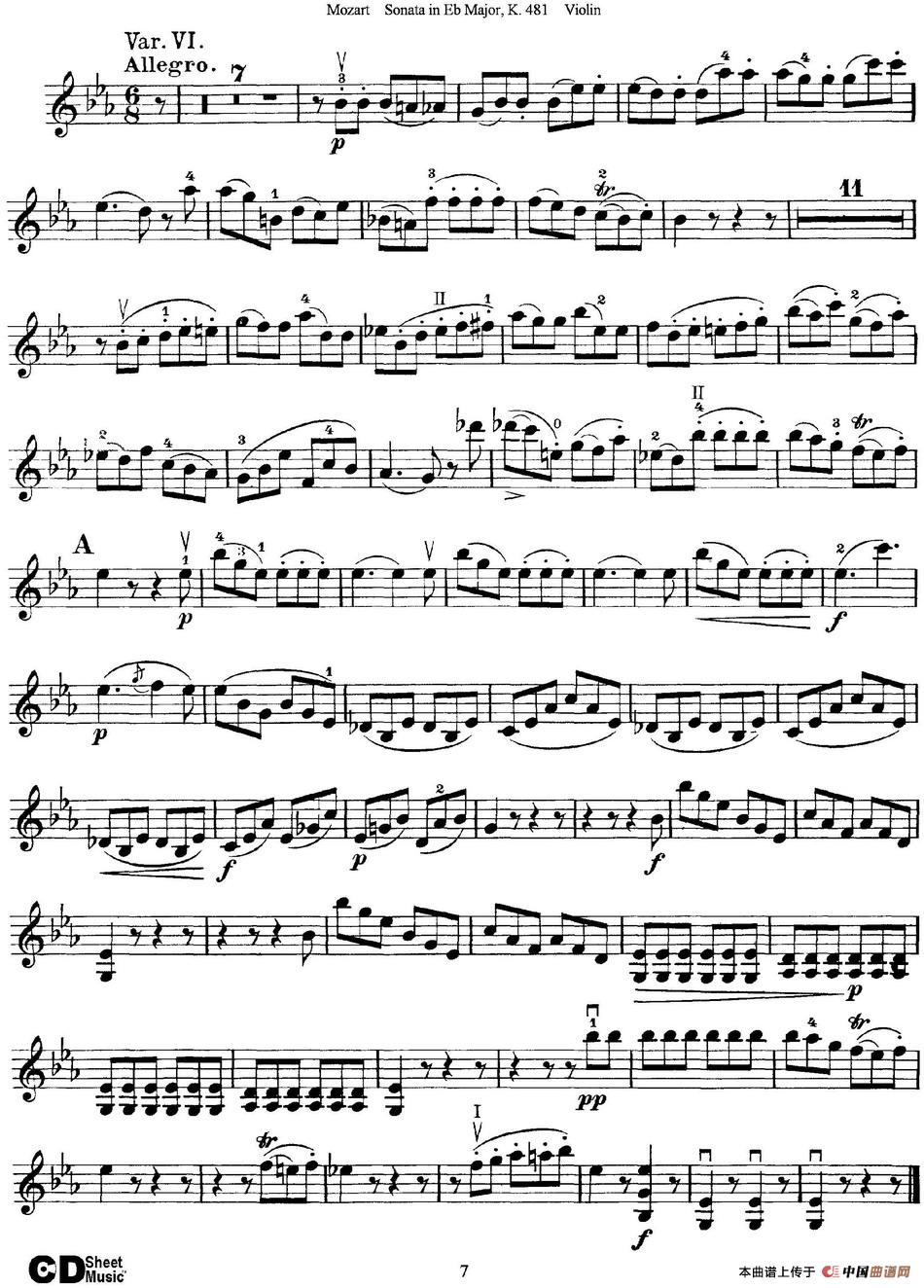 关于《Violin Sonata in Eb Major K.481》曲谱的评论
