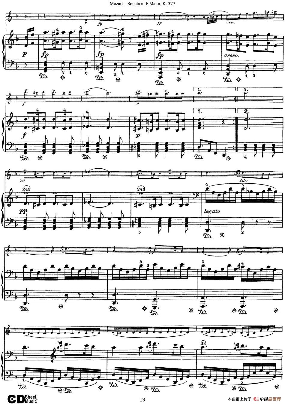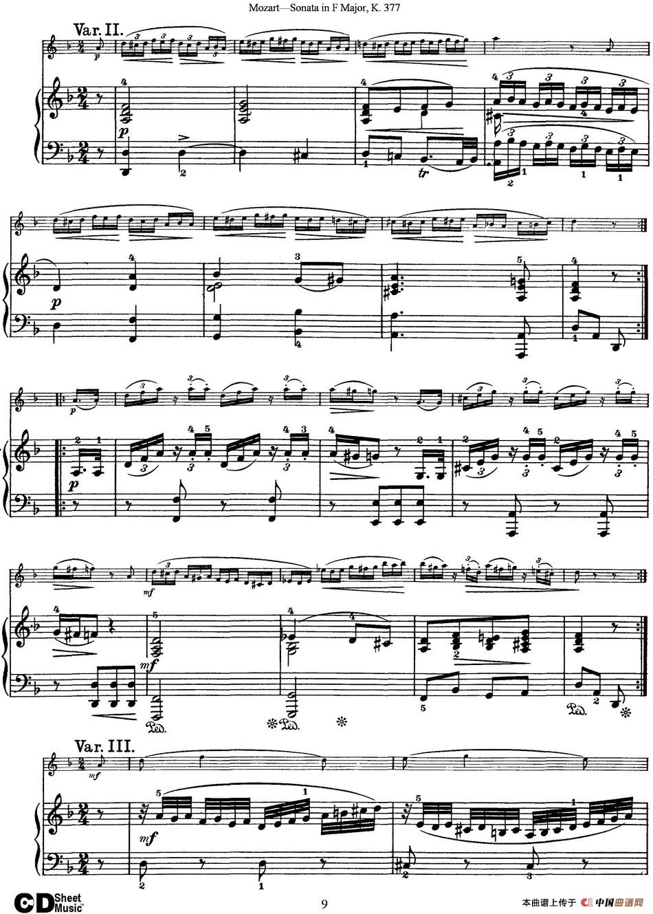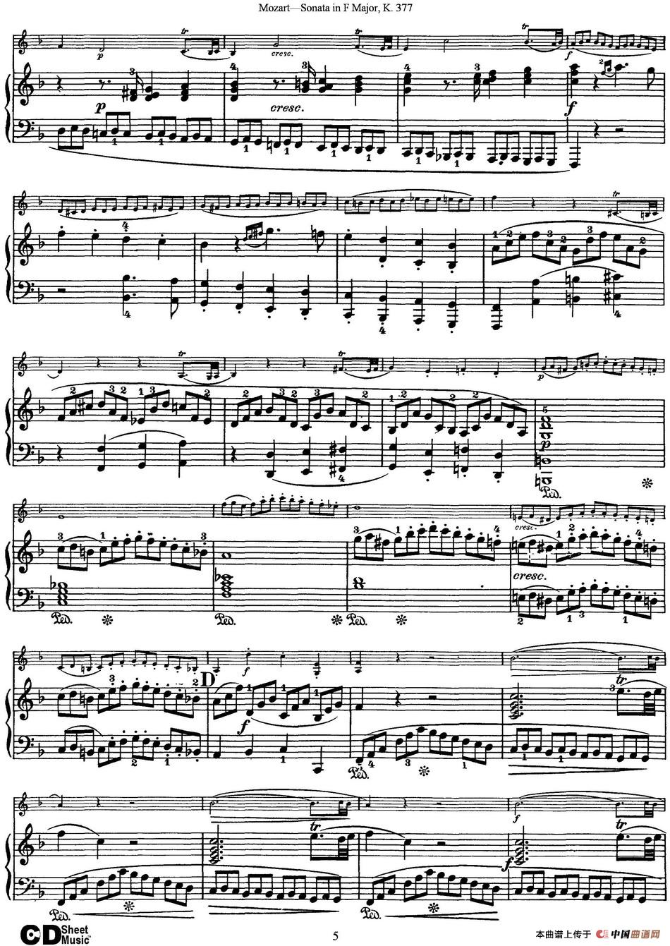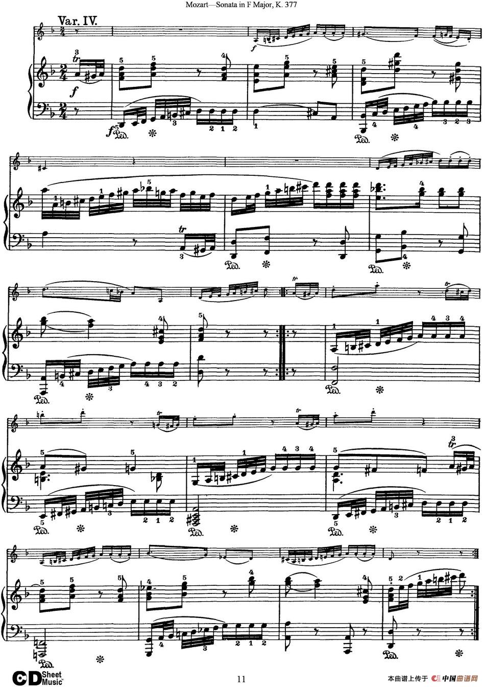 Violin Sonata in F Major K.377(小提琴+钢琴伴奏)