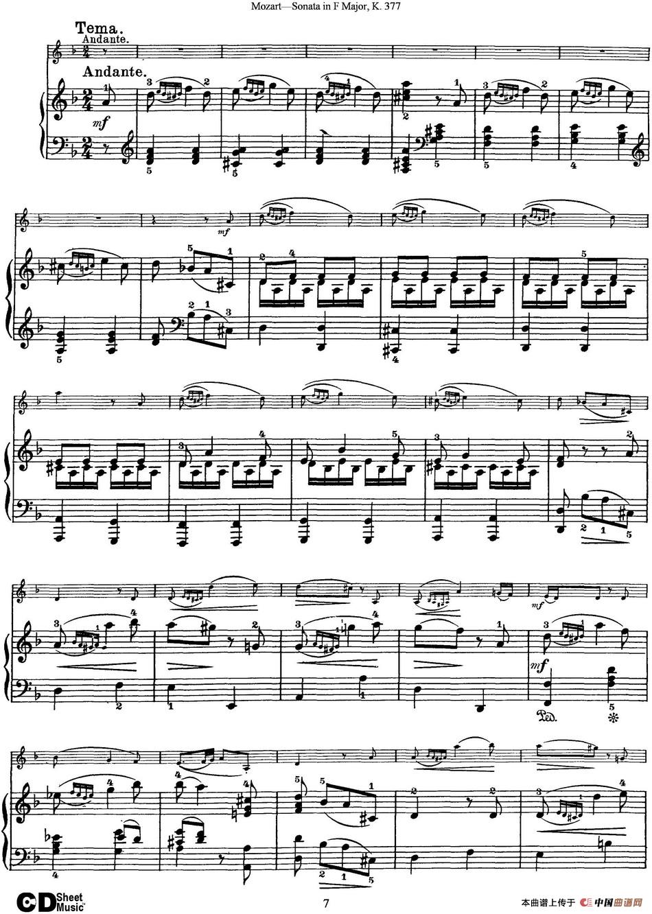 关于《Violin Sonata in F Major K.377》曲谱的评论