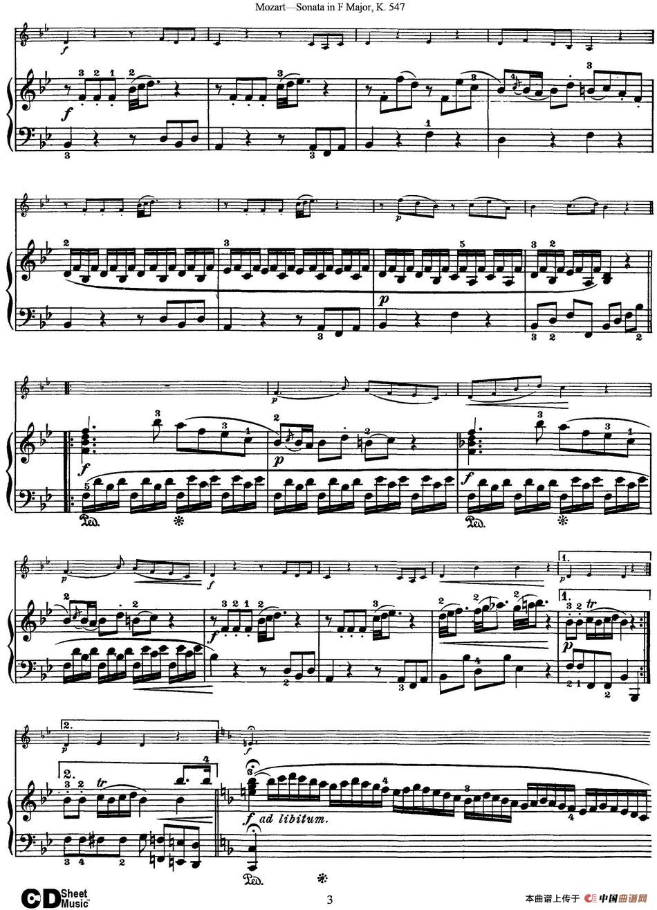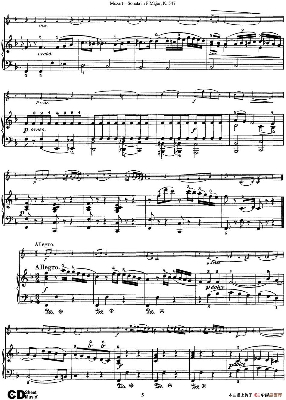Violin Sonata in F Major K.547(小提琴+钢琴伴奏)