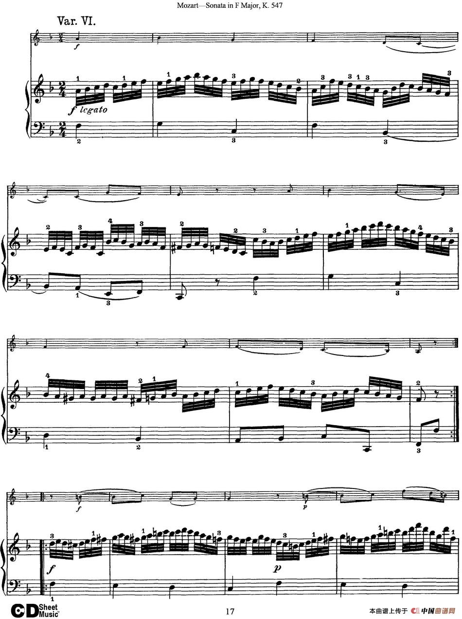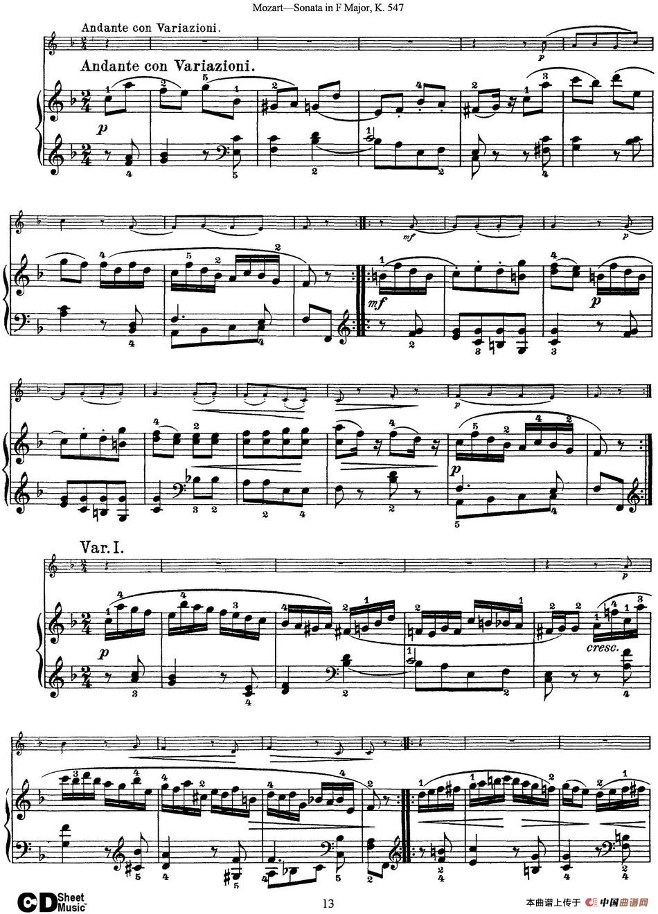 关于《Violin Sonata in F Major K.547》曲谱的评论