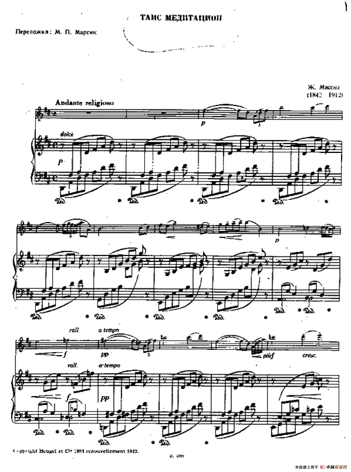 关于《沉思(选自歌剧《泰伊思》))》曲谱的评论