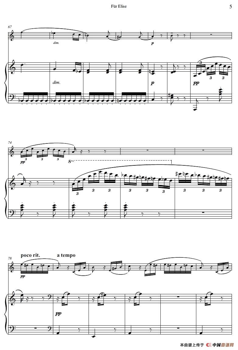 献给爱丽丝(小号独奏+钢琴伴奏谱)