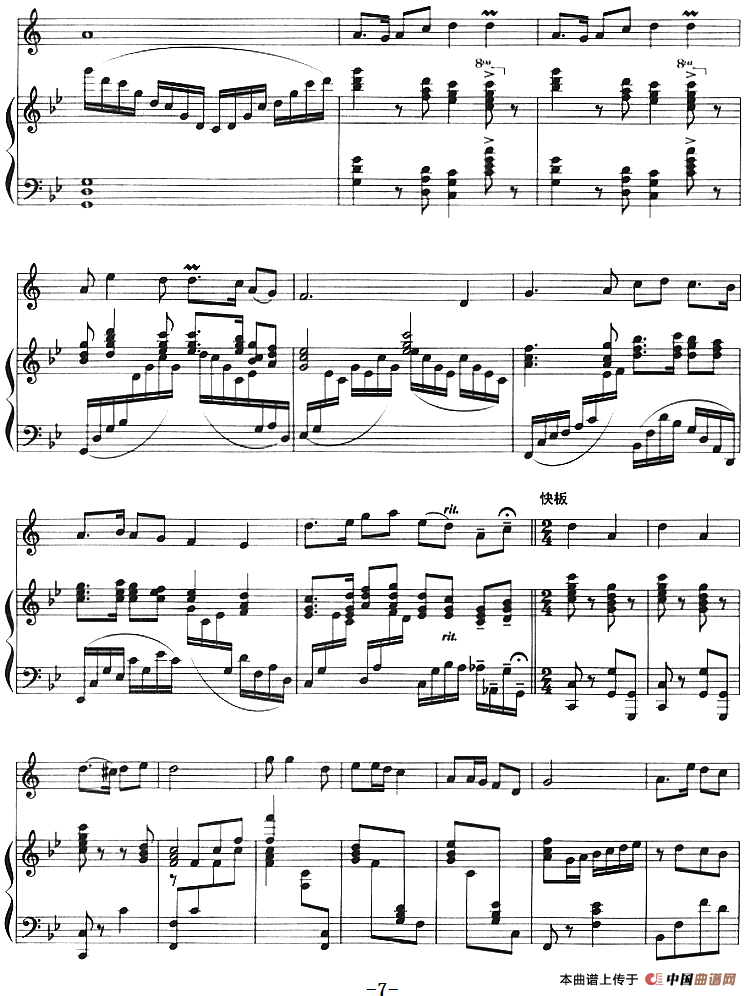 提示:在曲谱图片上单击右键,选择“图片另存为...”即可将曲谱保存到您的电脑中,打印时候可将图片插入到WORD中,调整合适大小打印即可。