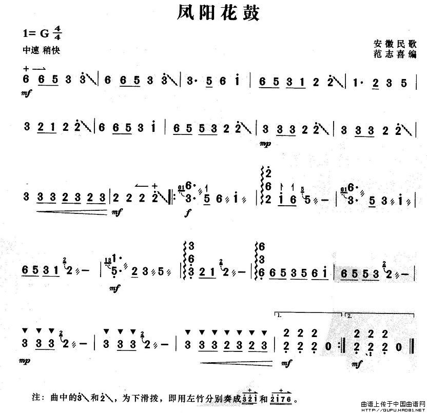 关于《凤阳花鼓》曲谱的评论
