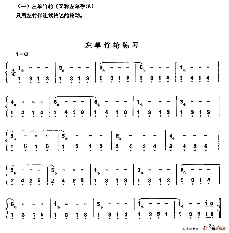 扬琴入门基础训练,又称左单手轮练习,也即左竹作连续快速的轮动。