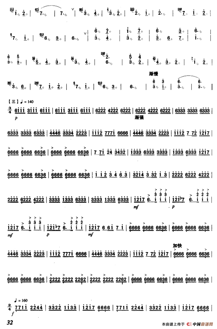 版本二:选自《扬琴考级曲集 考级辅导用书》三级