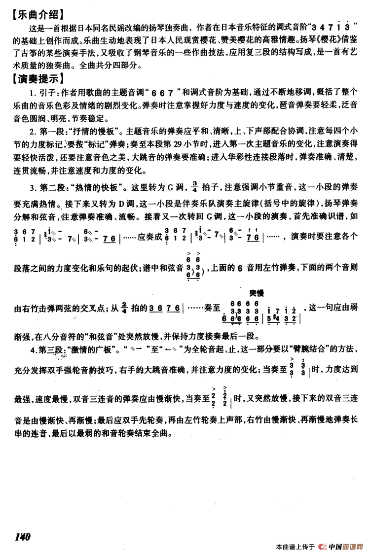 选自《扬琴考级曲集 考级辅导用书》