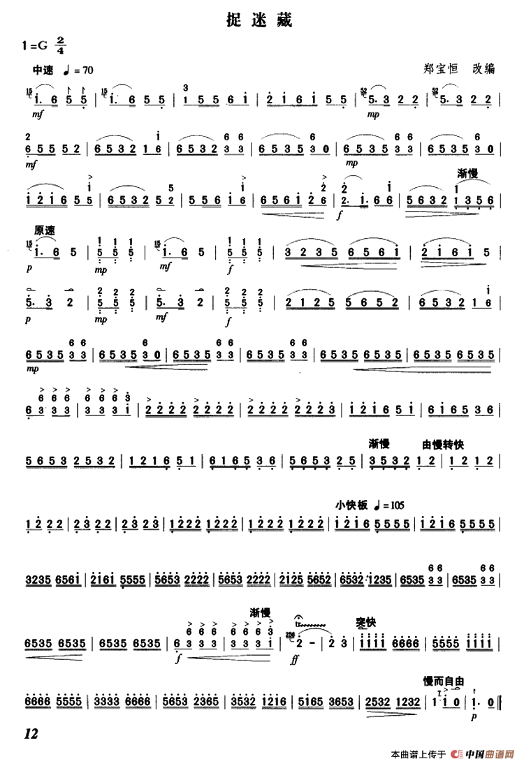 作曲:郑宝恒 改编 来源:《中国曲谱网》 上传:秋叶起舞