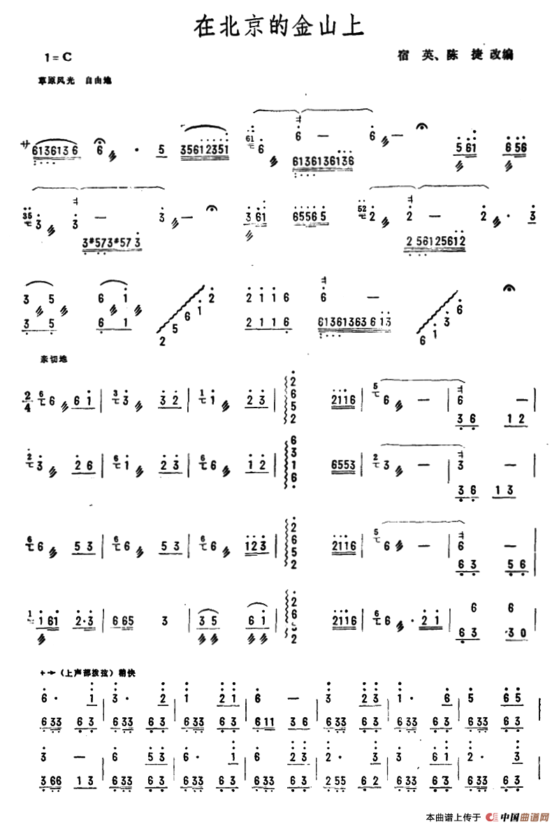 关于《在北京的金山上》曲谱的评论