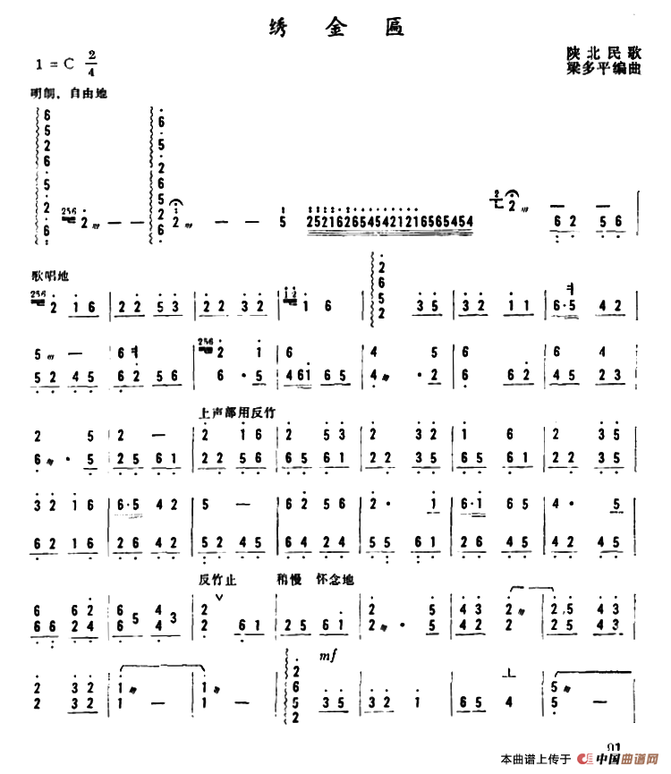 作曲:陕北民歌、梁多平编曲 来源:《中国曲谱网》 上传:秋叶起舞