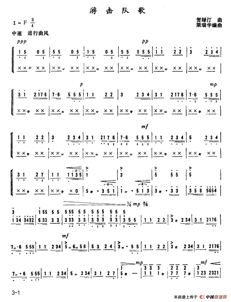 关于《游击队歌》曲谱的评论