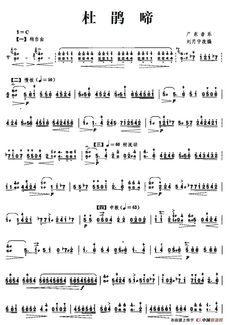 作曲:广东音乐、刘月宁改编 来源:中国曲谱网 上传:北京娃娃