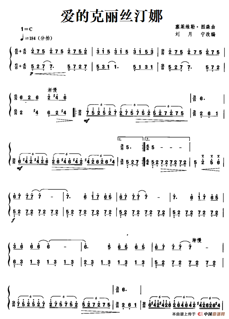 作曲:塞莱维勒·图森曲、刘月宁改编 来源:中国曲谱网 上传:北京娃娃