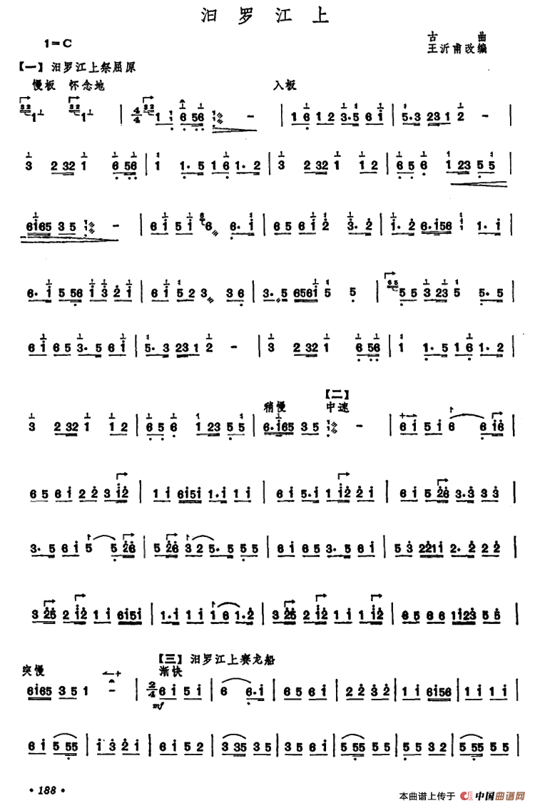 作曲:古曲、王沂甫改编 来源:《中国曲谱网》 上传:秋叶起舞