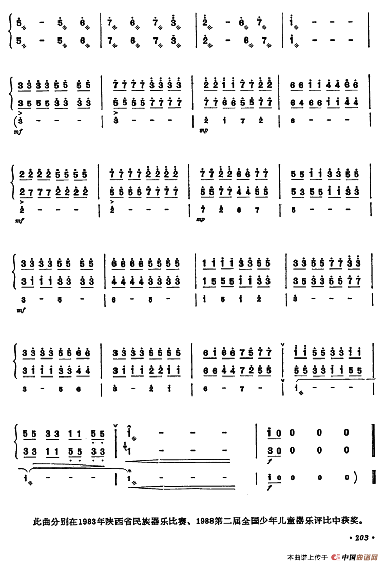 提示:在曲谱图片上单击右键,选择“图片另存为...”即可将曲谱保存到您的电脑中,打印时候可将图片插入到WORD中,调整合适大小打印即可。