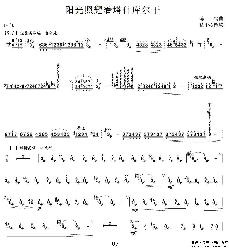 关于《阳光照耀着塔什库尔干》曲谱的评论