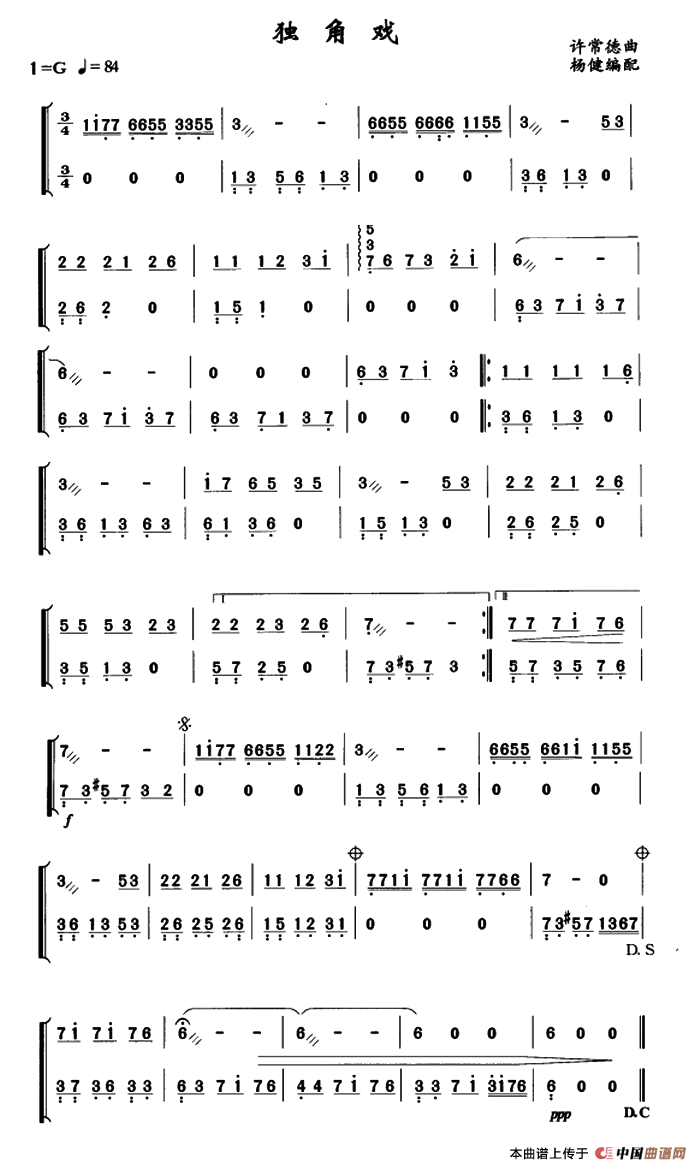 作曲:许常德曲、杨健编配 来源:《中国曲谱网》 上传:editor3