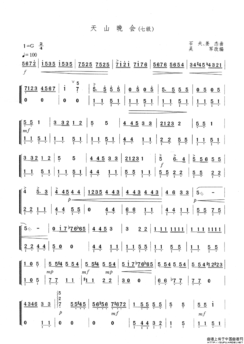 作曲:石夫 姜杰曲、吴军改编 格式:简谱 来源:转自网络 扫描上传 上传:秋叶起舞