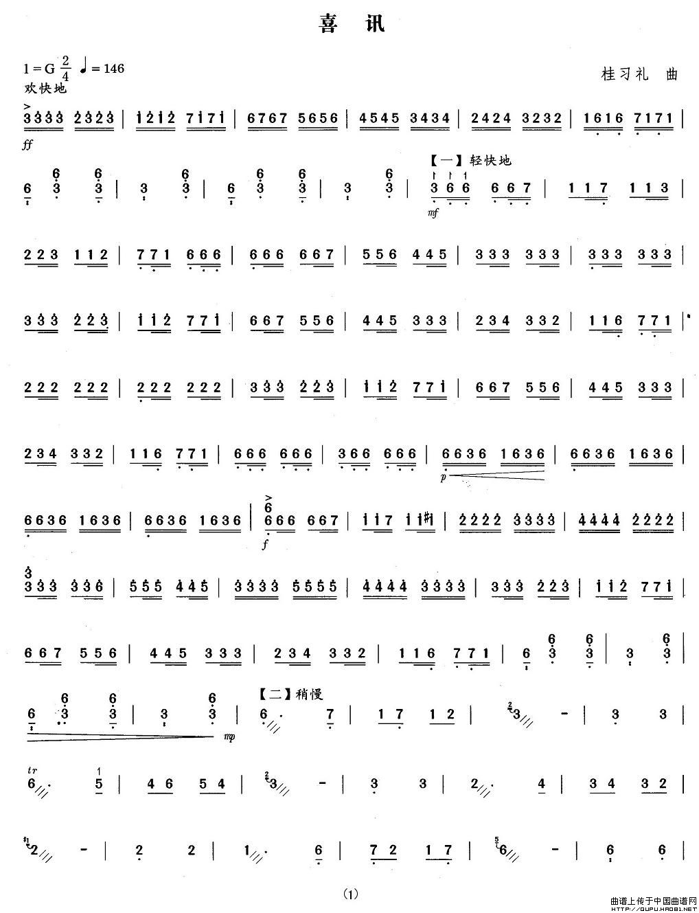 关于《喜讯》曲谱的评论
