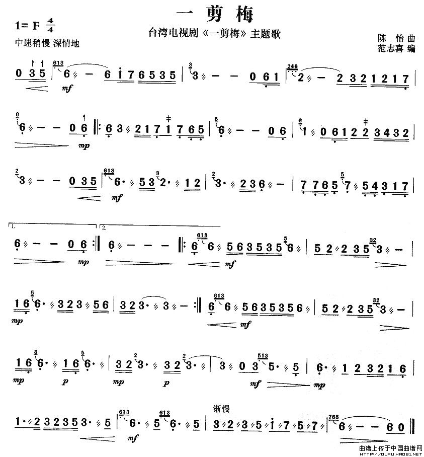 当前位置: 首页 器乐乐谱 扬琴乐谱 一剪梅