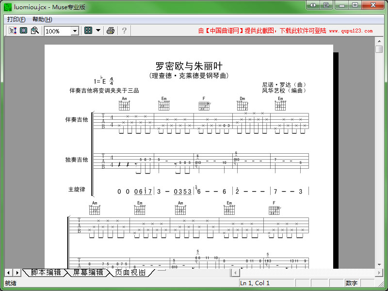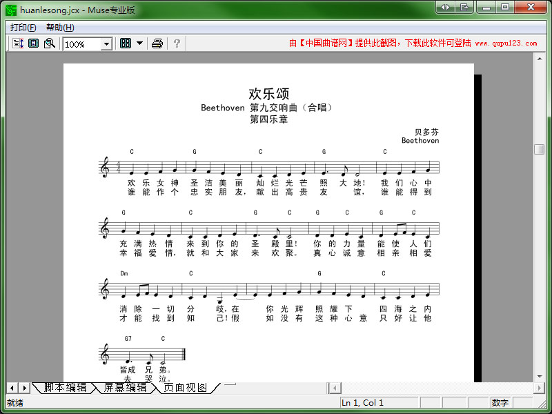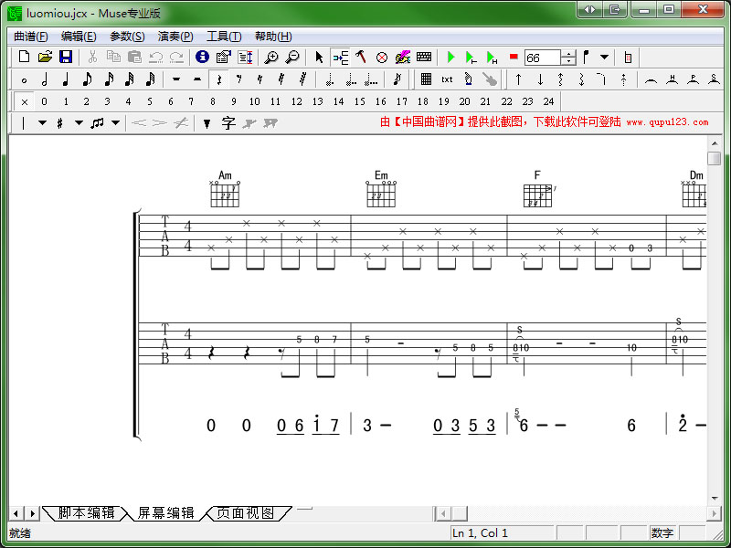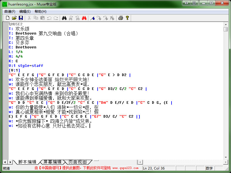 muse是一款相当好用的国产精品打谱软件,支持五线谱+六线谱和六线谱+简谱的排版方式,还可支持歌词的输入,支持屏幕输入以及脚本输入,支持谱子的播放。 MUSE被设计成一个专业的乐谱软件,一切围绕着如何方便和快捷的输入乐谱,如何保证乐谱输出的质量展开的。它可以达到的输入速度是最快的(可以说比国外的优秀的打谱软件encore、finale都快),因为通过脚本输入,你可以根本用不着鼠标而以打字员的速度来输入。乐谱中的所有符号都是矢量的,所以打印输出是可以达到出版级的精度。软件的屏幕渲染功能,使得在屏幕显示中消除各种锯齿现象,这也是目前其他打谱软件所不能够达到的。它具有一定的MIDI功能,主要是用来从原来的MIDI文件中导入乐谱,还有用来校验输入的乐谱旋律,所以没有对midi的各种特别的事件进行处理的能力。