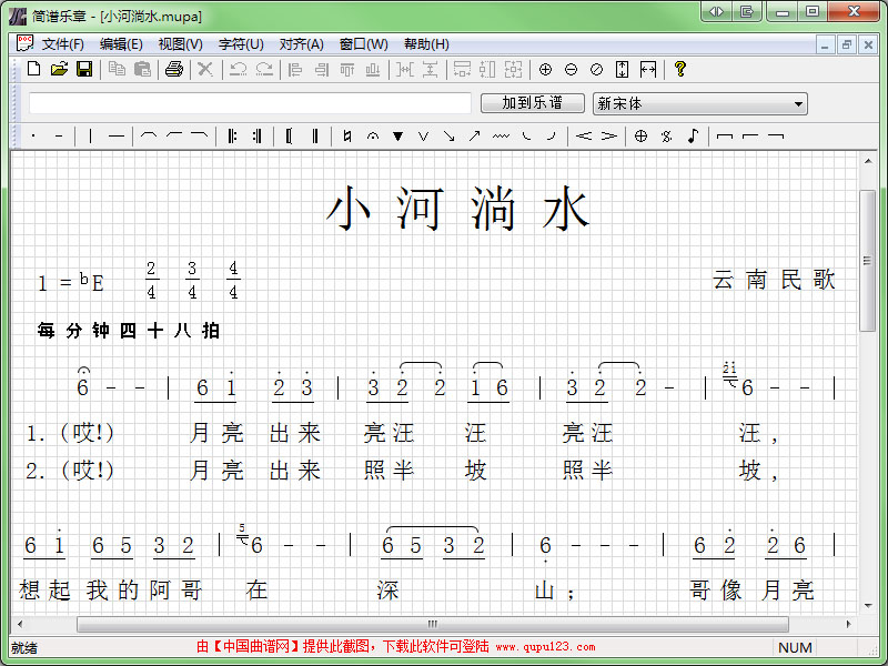 《简谱乐章》是一款实现简谱的输入、编辑和打印的免费软件,可免费使用和传播。软件作者自己需要乐谱,而去网上找却找不到趁手的,要么就是商业版收费的。因此自己动手写了这个简谱软件,并免费共享给谱友使用。在此感谢这位软件作者。此软件优点在于简单、方便。所有音符、线条位置可自由调整。但缺少自动排版功能,制谱所花时间较长。真心希望作者在下个版本能够加强。软件是绿色软件,下载解压后直接运行即可,无需安装。下载的文件包里包含使用说明。