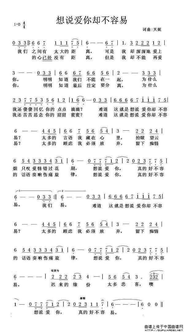 关于《想说爱你却不容易》曲谱的评论