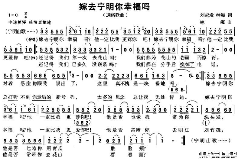 关于《嫁去宁明你幸福吗》曲谱的评论