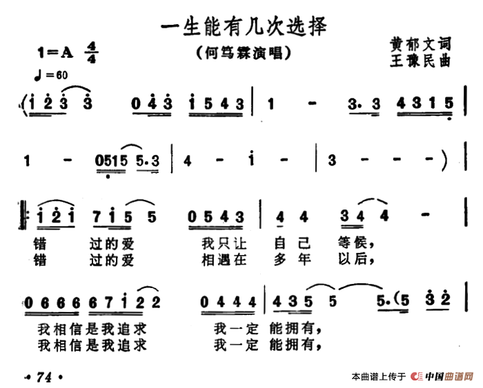 关于《一生能有几次选择》曲谱的评论