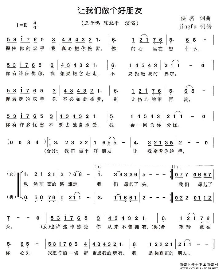 关于《让我们做个好朋友》曲谱的评论
