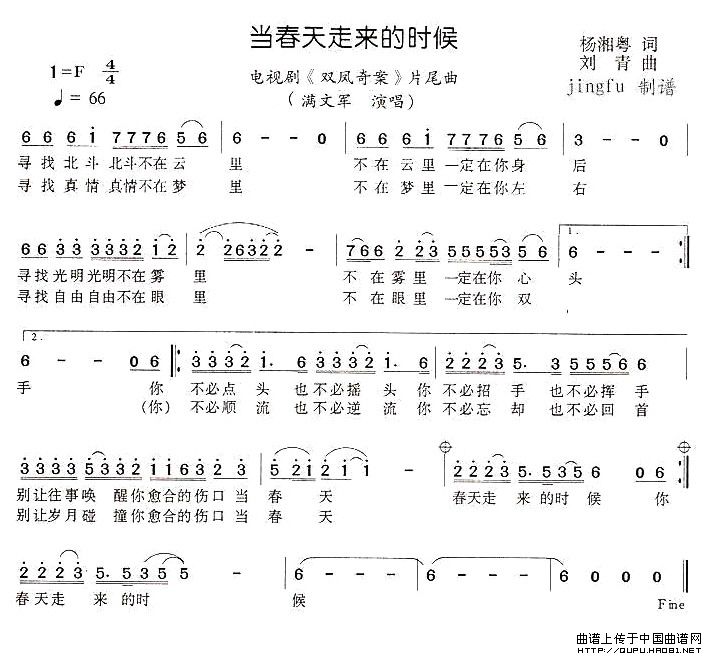 关于《当春天走来的时候》曲谱的评论