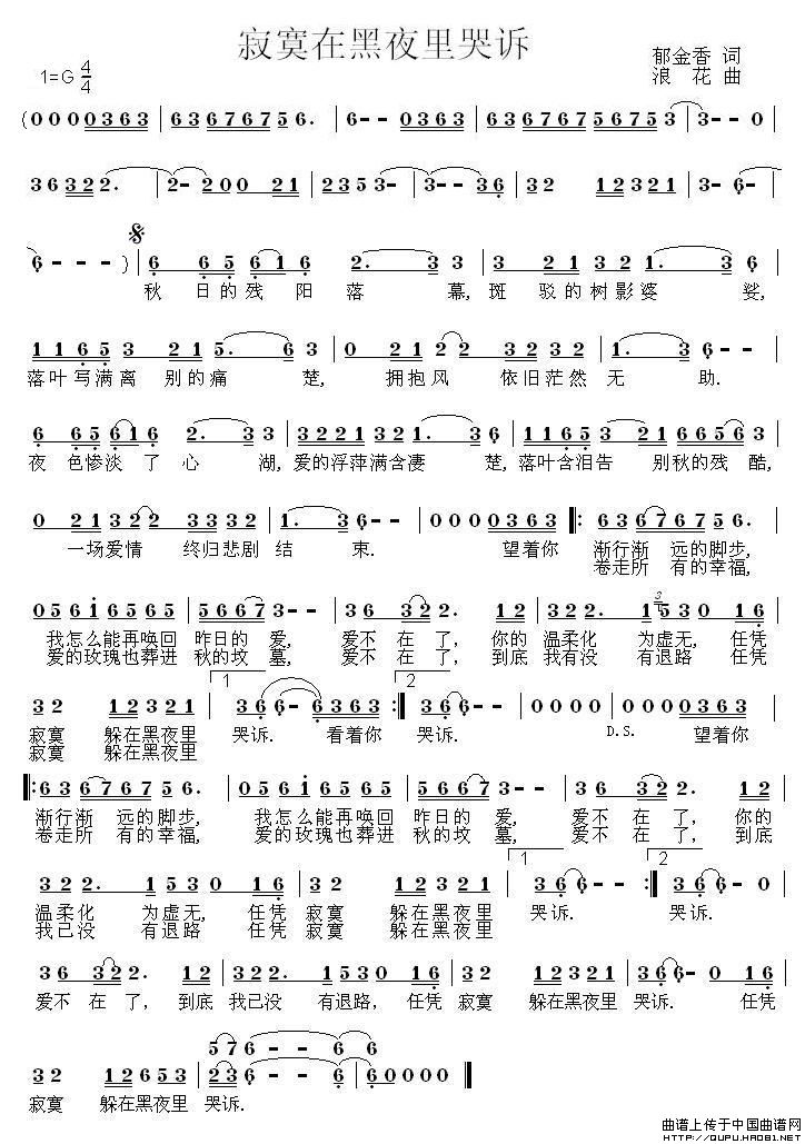 关于《寂寞在黑夜里哭诉》曲谱的评论